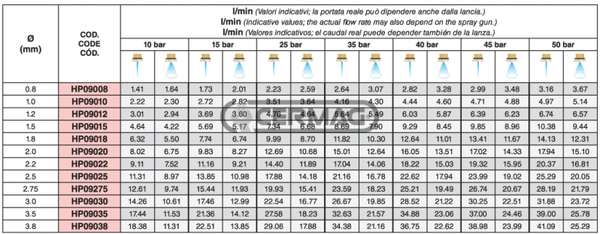 • Dispositivo reversibile (dx/sx) di variazione del flusso a regolazione continua dell'ampiezza del cono irrorante.